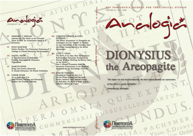 In addition, we would like to extend our appreciation to the editorial team of Analogia Journal, whose dedication and meticulous attention to detail have been instrumental in bringing this publication to fruition. Also, to Prof Nikolaos Loudovikos, the Senior Editor, for his seminal contributions to contemporary reflection on patristic thought and the stewardship of The Analogia Journal. His profound work in bridging the gap between Orthodox Christianity and Western theological and philosophical discourses has not only enriched the academic landscape but has also significantly inspired the establishment and activities of the Dionysius Circle.