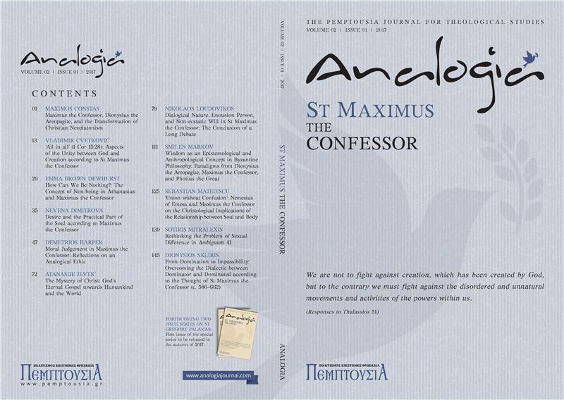 Analogia owes the inspiration and the cause of this issue to one of the members of the Editorial Board, namely Dr Sotiris Mitralexis, who organized the workshop on St Maximus at the twenty-third International Congress of Byzantine Studies in Belgrade, August 2016, and invited many of the contributors of the present volume. Though not all of the workshop participants offered their papers for publication in Analogia, most of the articles in this volume were presented as drafts at the Belgrade workshop. The articles by two of the contributors, Bishop Atanasije Jevtić and Fr Maximos Constas, were added later. I wish to thank, first, Dr Mitralexis for his willingness to contribute the papers from the Belgrade workshop to this issue of Analogia, which has greatly assisted the journal’s editorial purposes. Second, I would like to thank the authors for their efforts towards the production of papers of high academic quality.