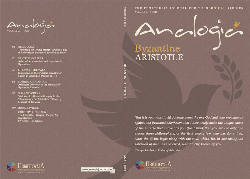 In an attempt to engage with the modern understanding of such a fertile enterprise as Byzantine Philosophy, Analogia offers this first collection of distinguished essays written by promising experts of the younger generation, which comprise a good part of the essays received by the Journal once the invitation for a Byzantine Aristotle volume was extended to the academic community.
